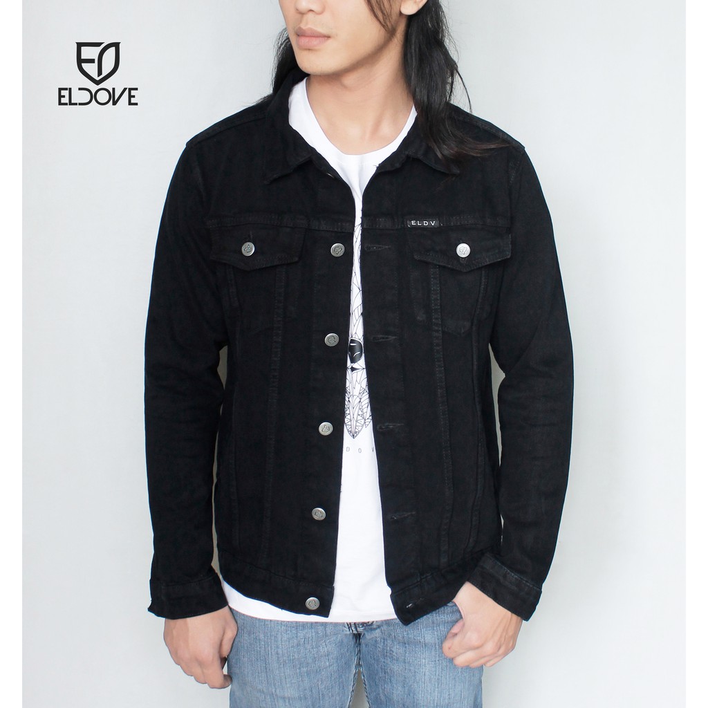 JAKET DENIM ELDOVE DENIM JACKET BLACK 5033 JAKET PRIA JAKET PRIA KEREN TERBARU JAKET PRIA KEREN DISTRO TERMURAH