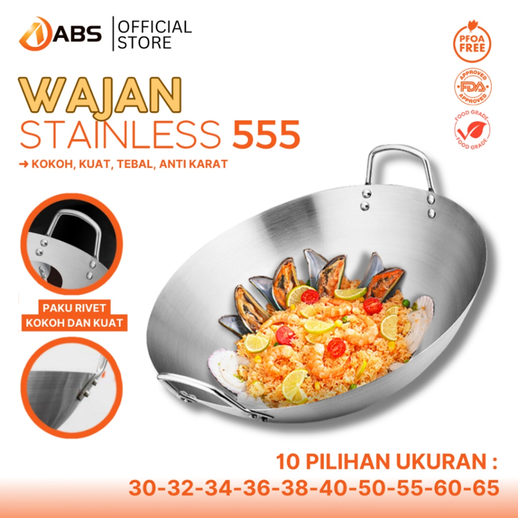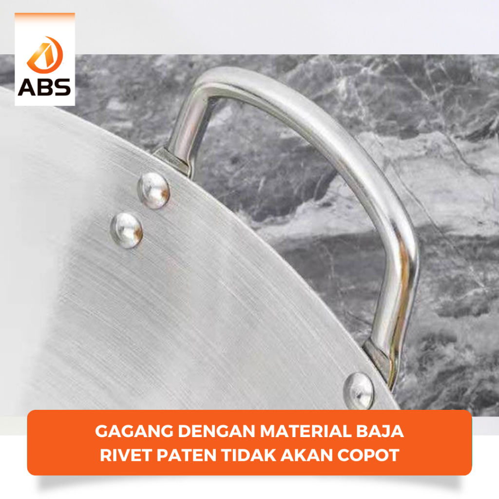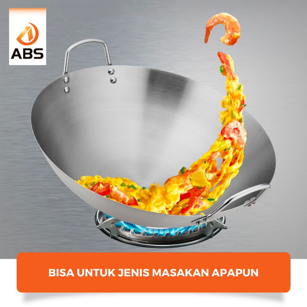 ABS [] Wajan Stainless 555 Tebal Kuali Premium dengan Pegangan Stainless Steel Kuali Besar Katel Anti Lengket