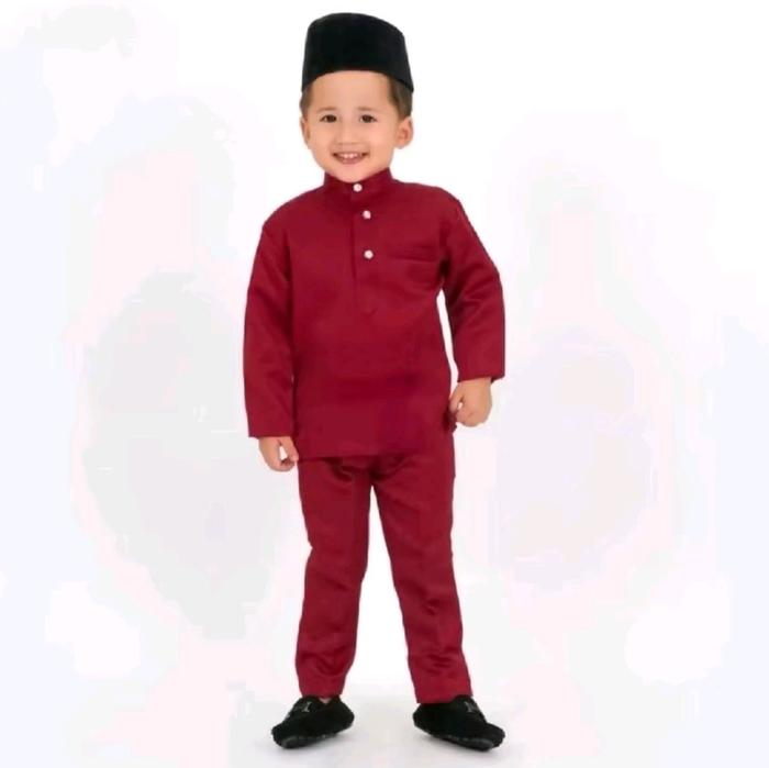 SETELAN ANAK TELUK BELANGGA / SETELAH MELAYU ANAK/SETELAN KOKOH ANAK BAJU + CELANA MUSLIM - 1-2TAHUN, BURGUNDY MAROON
