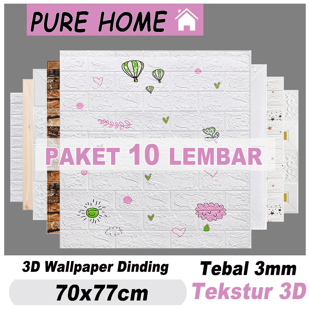 Pure Home - PAKET 10 LEMBAR Wallpaper Dinding 3D Foam Stiker 70x77CM/70x70CM Tebal 3mm Wallpaper Stiker Dekorasi Di