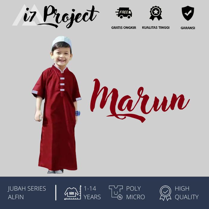 JUBAH ANAK MODEL ALFIN USIA 1-14 TAHUN / 4 VARIAN WARNA - MARUN, (S) 1-2 TAHUN