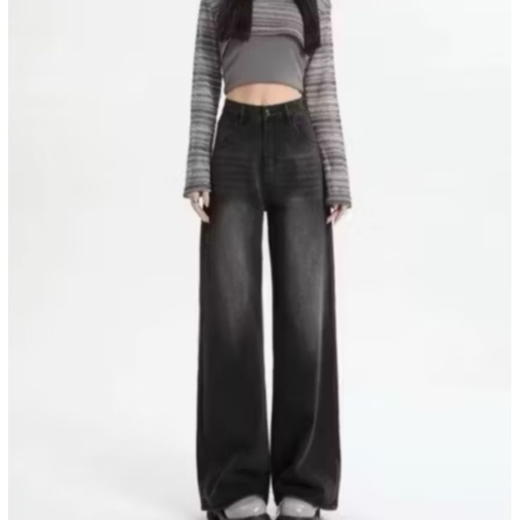 UNISEX Celana Jeans Wisker Gombrong Baggy Pants Wide Leg Lebar Skena Loose