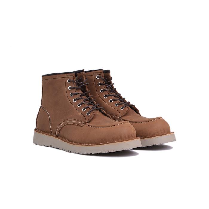 Lennox Tan - Sepatu Kulit Bikers Adventure Tactical PDH PDL Moc Toe Boots Pria Shoe Shoes