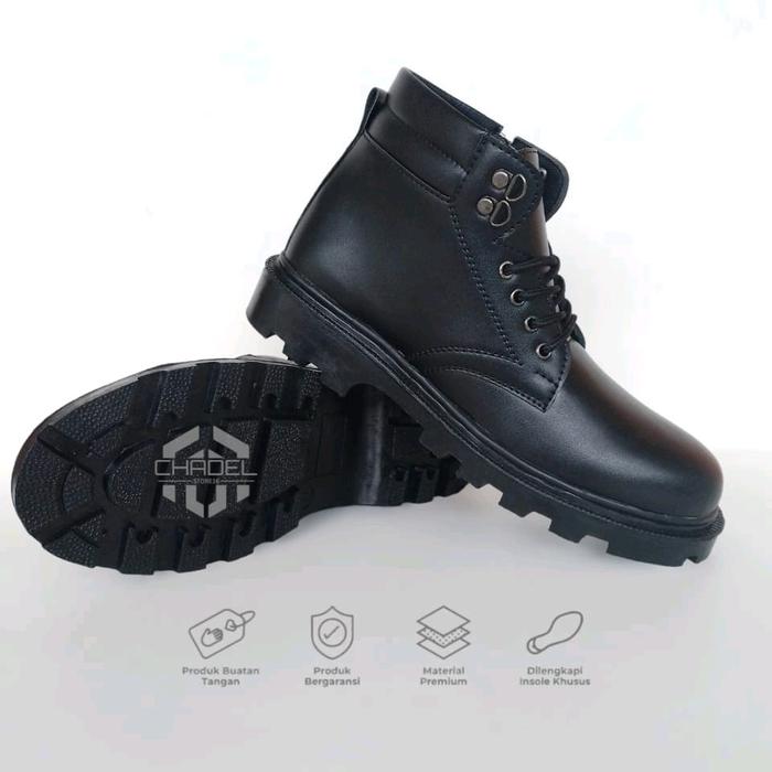 Sepatu PDH Tinggi Resleting Autsol Radial Satpam Security Hitam Kilap dan Doof untuk Kantoran,