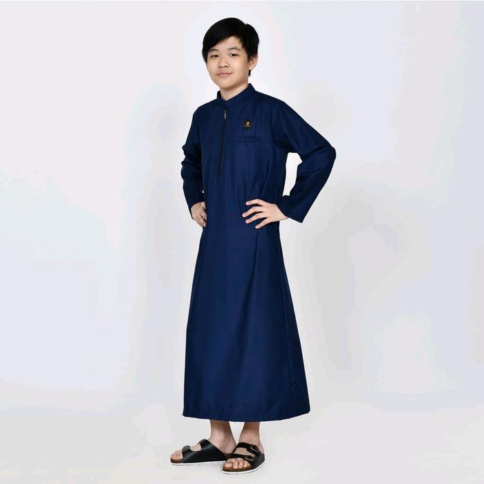 BAJU JUBAH MUSLIM REMAJA LENGAN PANJANG POLOS GAMIS ANAK TOYOBO NYAMAN - JUBAH REMAJA ZIPER NAVI, NO.6 UMUR 4-5 TH