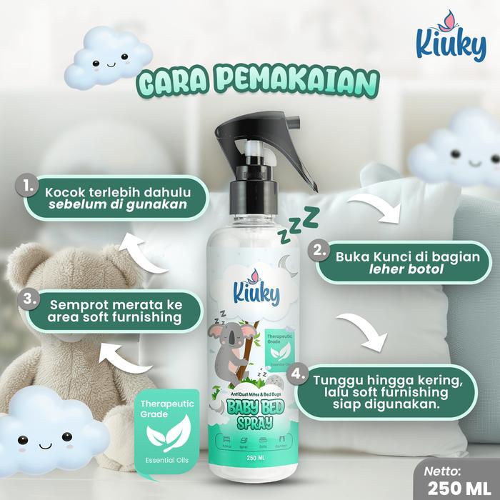 KIUKY BABY BED SPRAY - ANTI TUNGAU, PEMBASMI KUTU KASUR, KUTU BUSUK DAN AKTI BACTERIAL KASUR BAYI 250ML