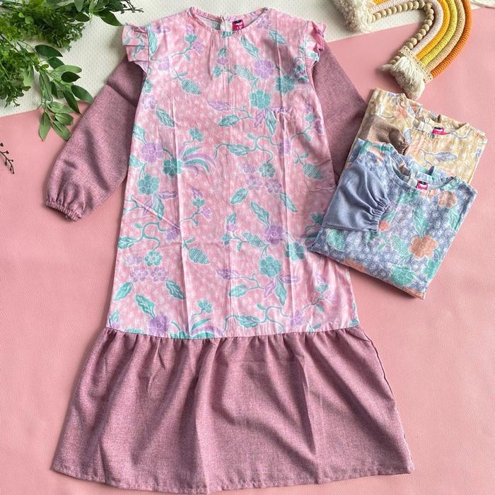 BATIK KIDS NEW GAMIS MELLY HIJAB FRIENDLY BAHAN ADEM COCOK BUAT SI KECIL KOMBINASI POLOS PINK COKSU BIRU - BIRU, M