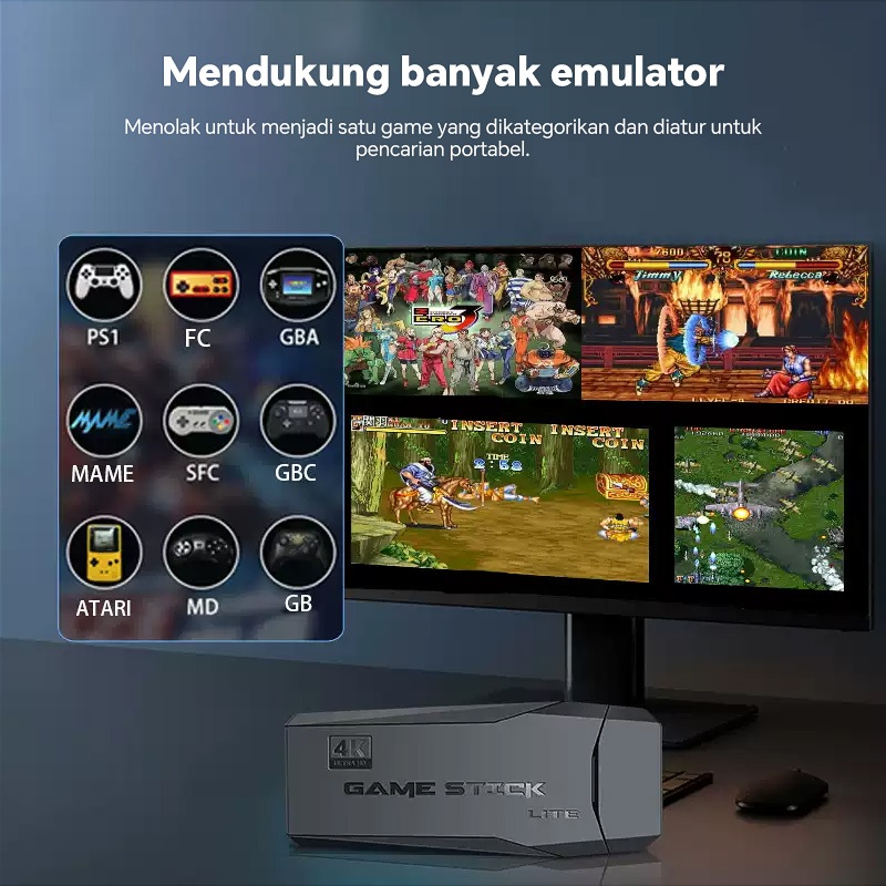 ENJOYTECH Game Stick 4K / Gamepad Bluetooth Nirkabel Ganda / Konsol Game 64G Konsol Game Built-in 20300 Konsol Game Genggam Retro Tongkat Game Genggam Anak Pengontrol Nirkabel Hadiah Natal PS1 / GBA