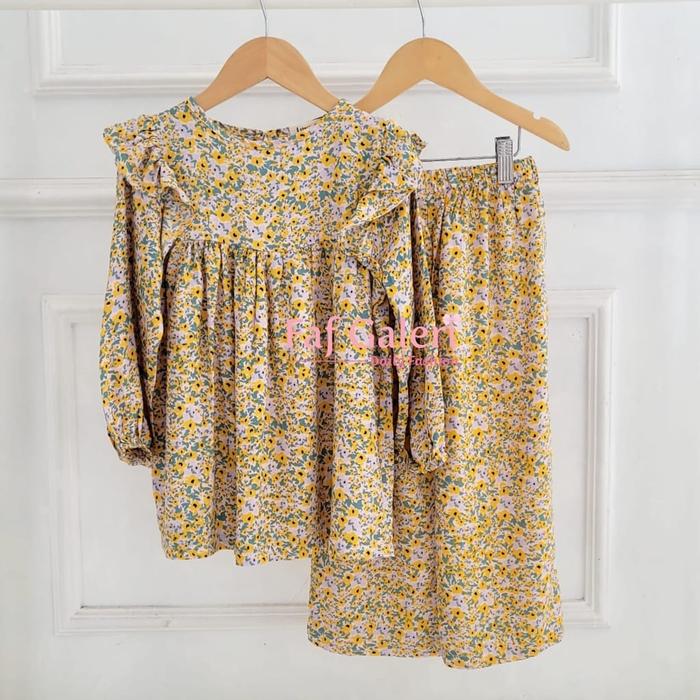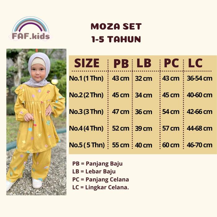 1-5 TAHUN MOZA SET - SETELAN MUSLIM ANAK PEREMPUAN RAYON VISCOSE - MOTIF 02, NO.1 (1 THN)