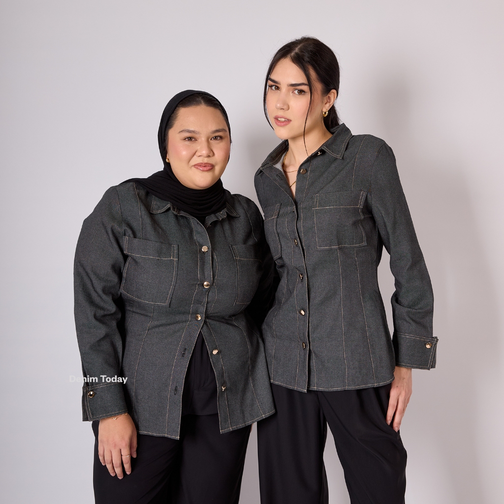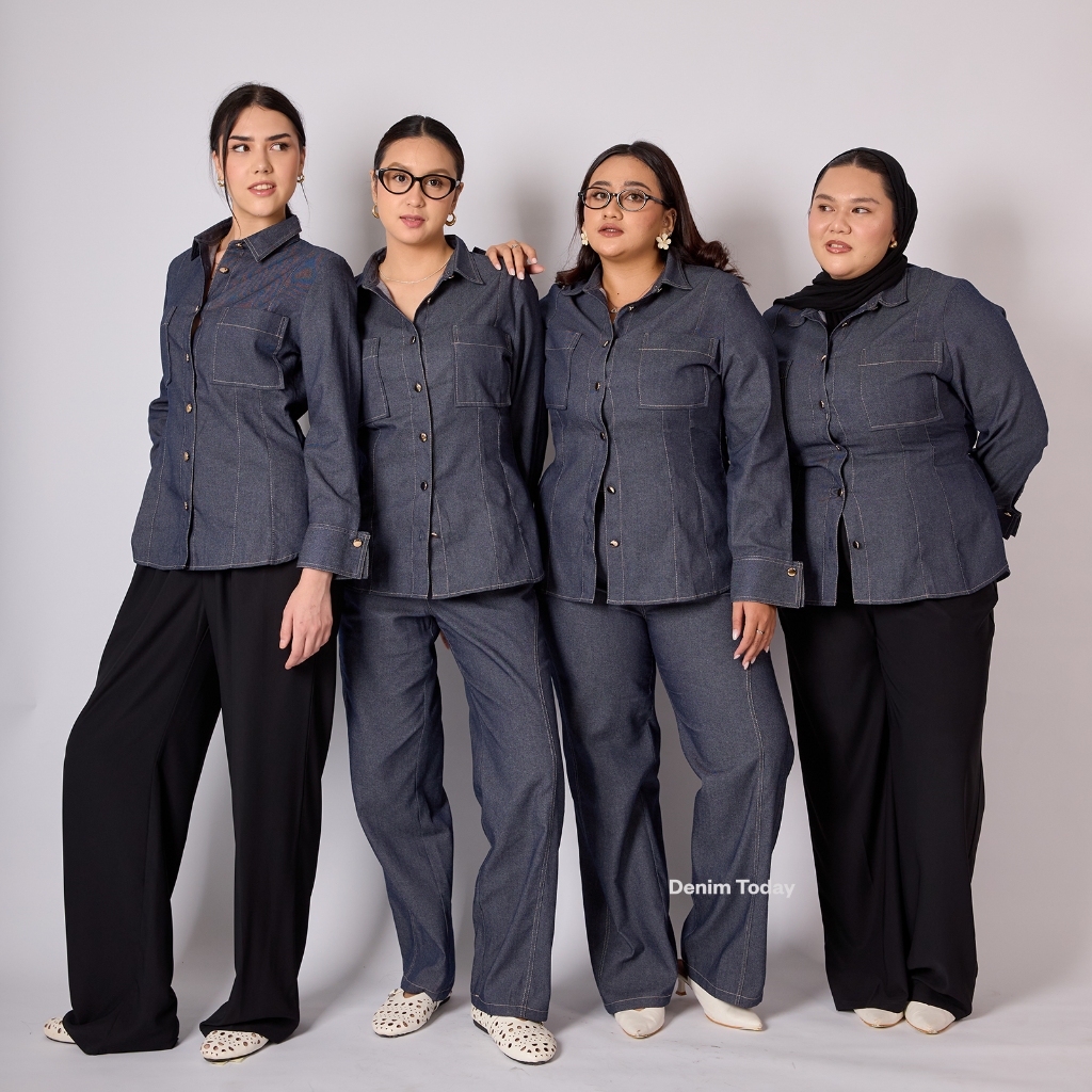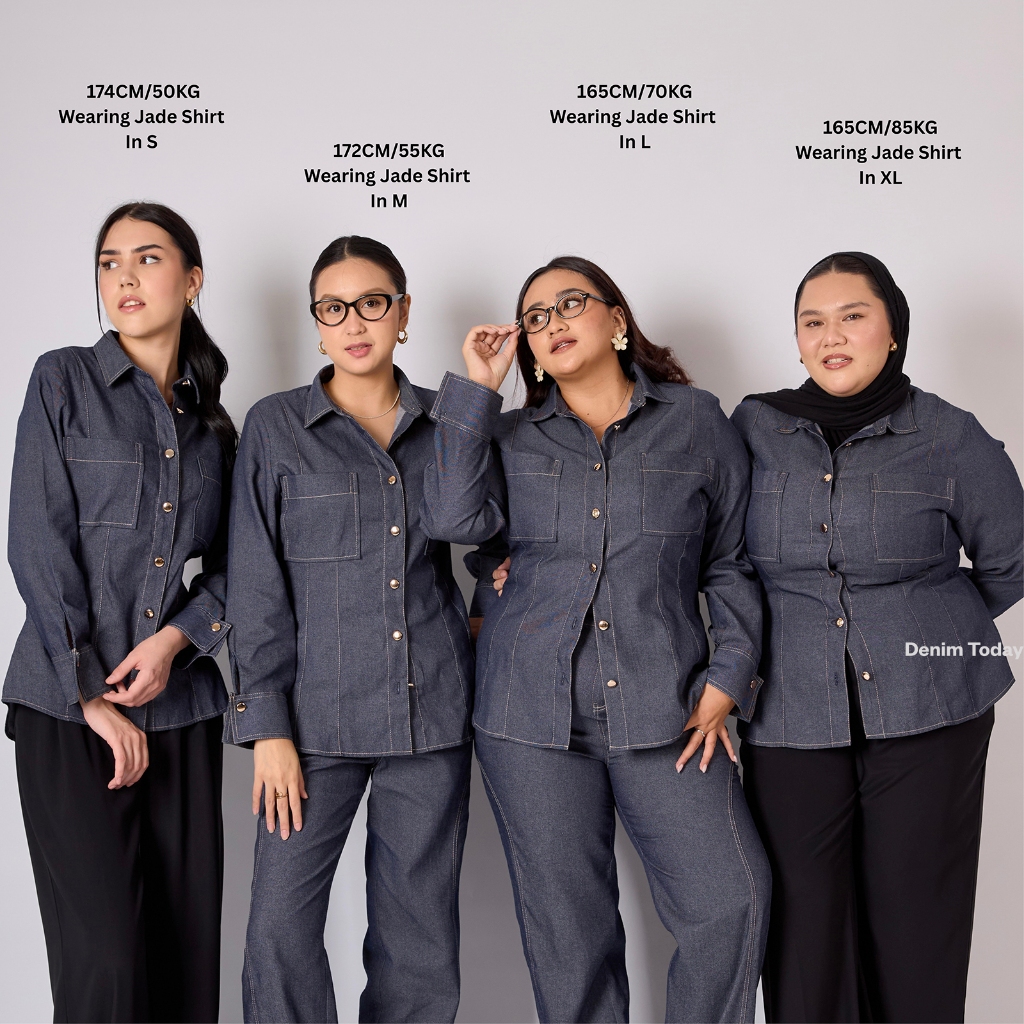 Jade Denim Shirt Premium Lightweight Denim Shirt Fitted with Contrast Stitching Details Bisa Sampai Big Size S, M, L, XL