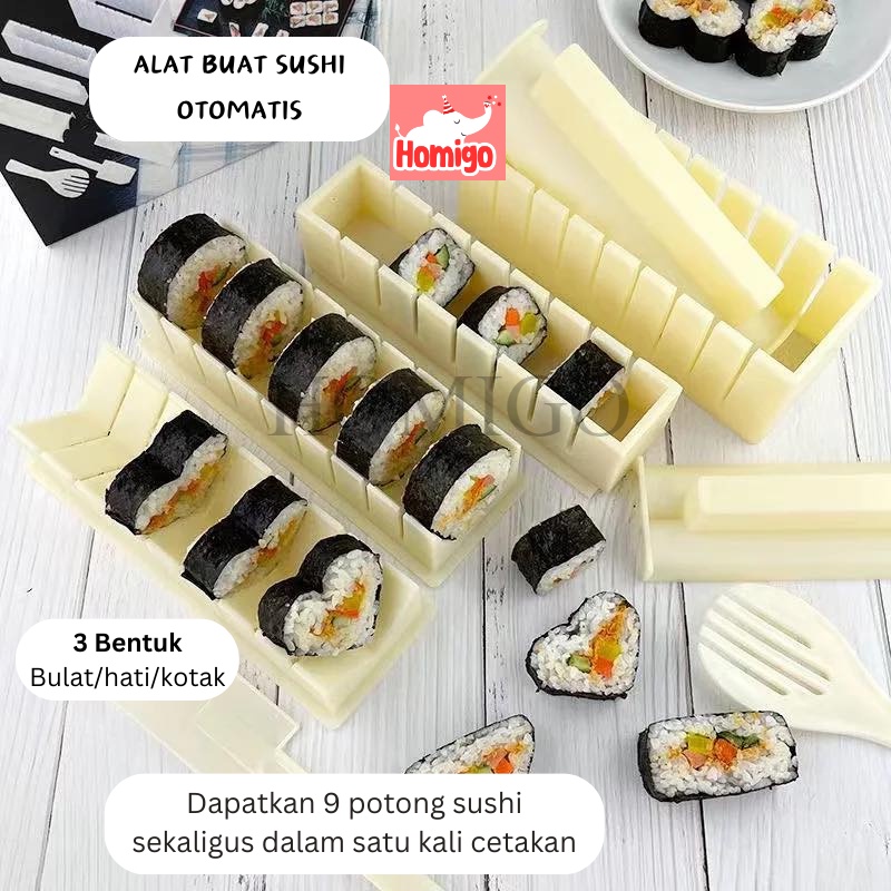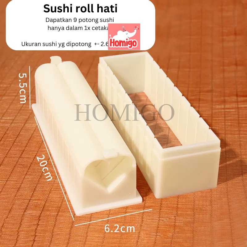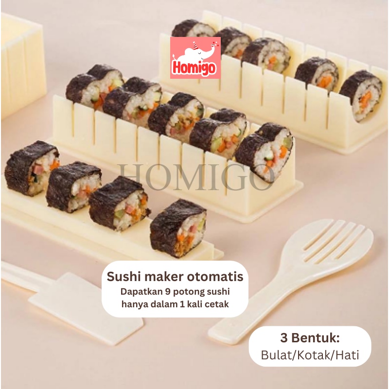 Homigo Cetakan Sushi Gulung Roll Motif Bulat Kotak Hati Alat Buat Sushi Maker Otomatis Praktis