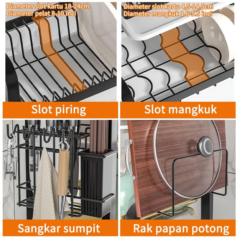 Rak Piring Stainless Steel Rak Cuci Piring Penyimpanan Dapur Muat Mangkuk Dan Piring