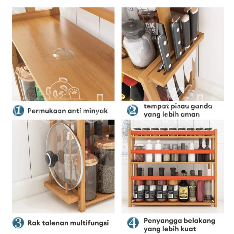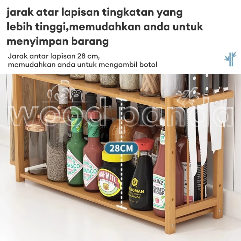 Rak Dapur Serba Guna Rak Bumbu Dapur Tempat Bumbu Kayu 2 Susun Bambu Rak Botol Bumbu Rak Penyimpanan