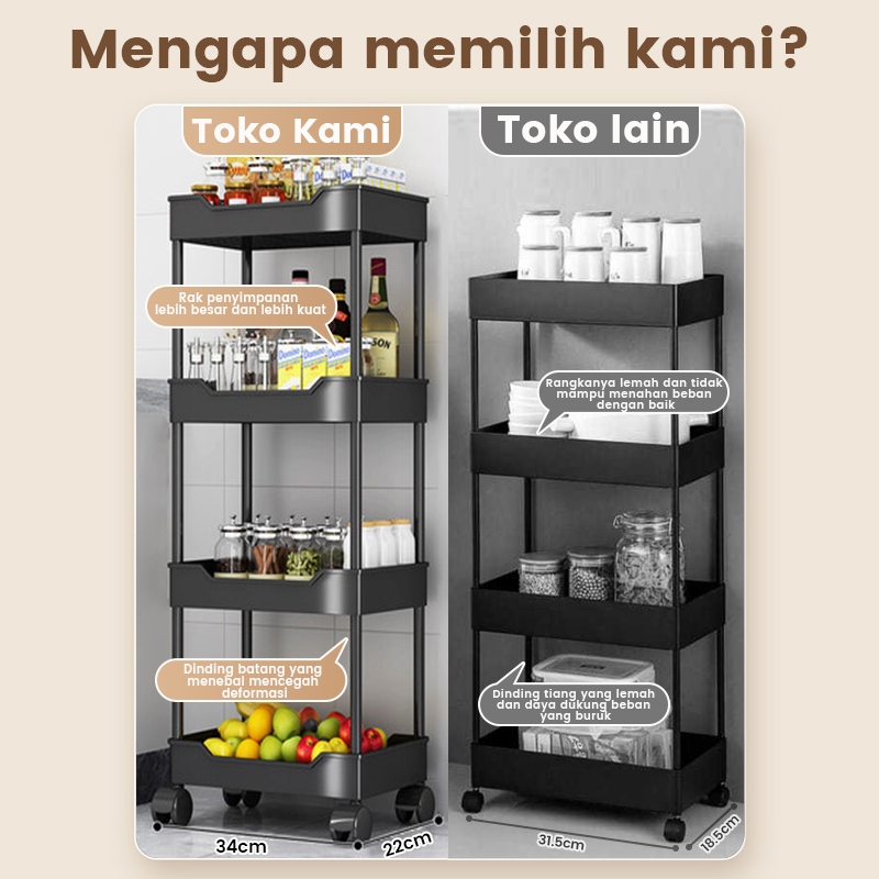 SAKULA Rak Dapur 4 Susun Rak Troli Serbaguna Rak Persegi Rak Segitiga