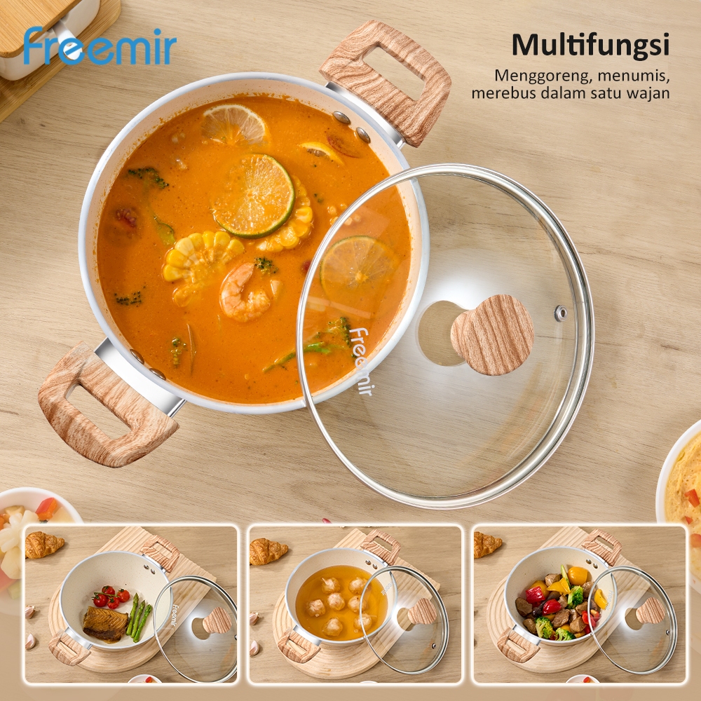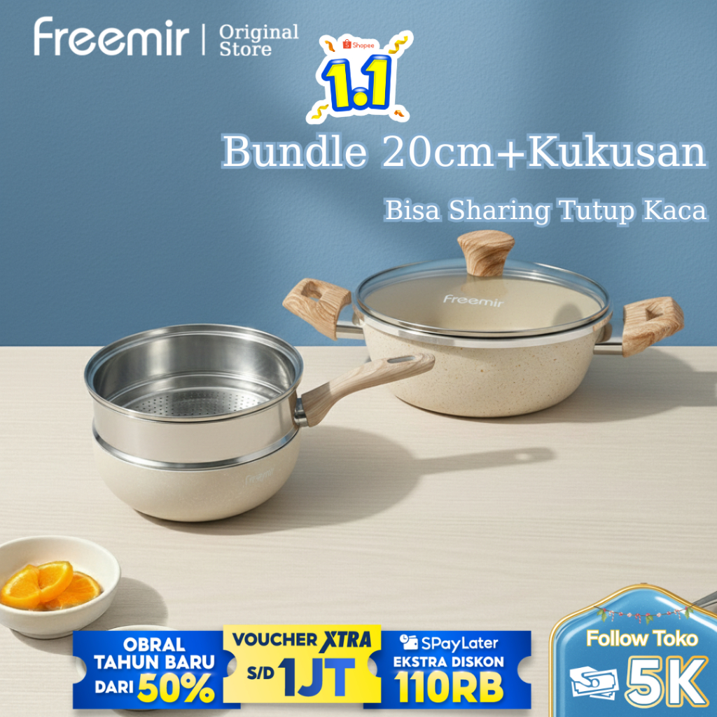 [NEW 2026] freemir Bundle 3 Pcs Wajan Panci 20cm Sharing Tutup Kaca + Kukusan