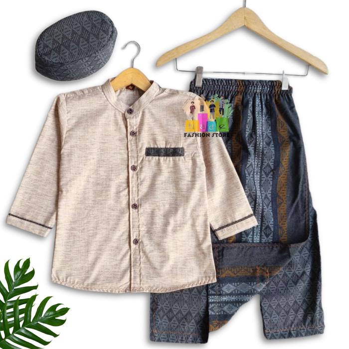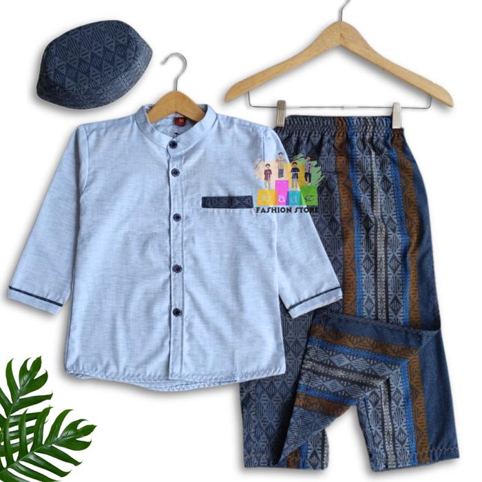 SARKOCI A&J SONGKET SULTAN LENGAN PANJANG - MUSLIM ANAK MODEL SARUNG KOKO PECI BAHAN LINEN KOMBINASI KATUN SONGKET NYAMAN DAN ELEGAN - BIRU MUDA, XS