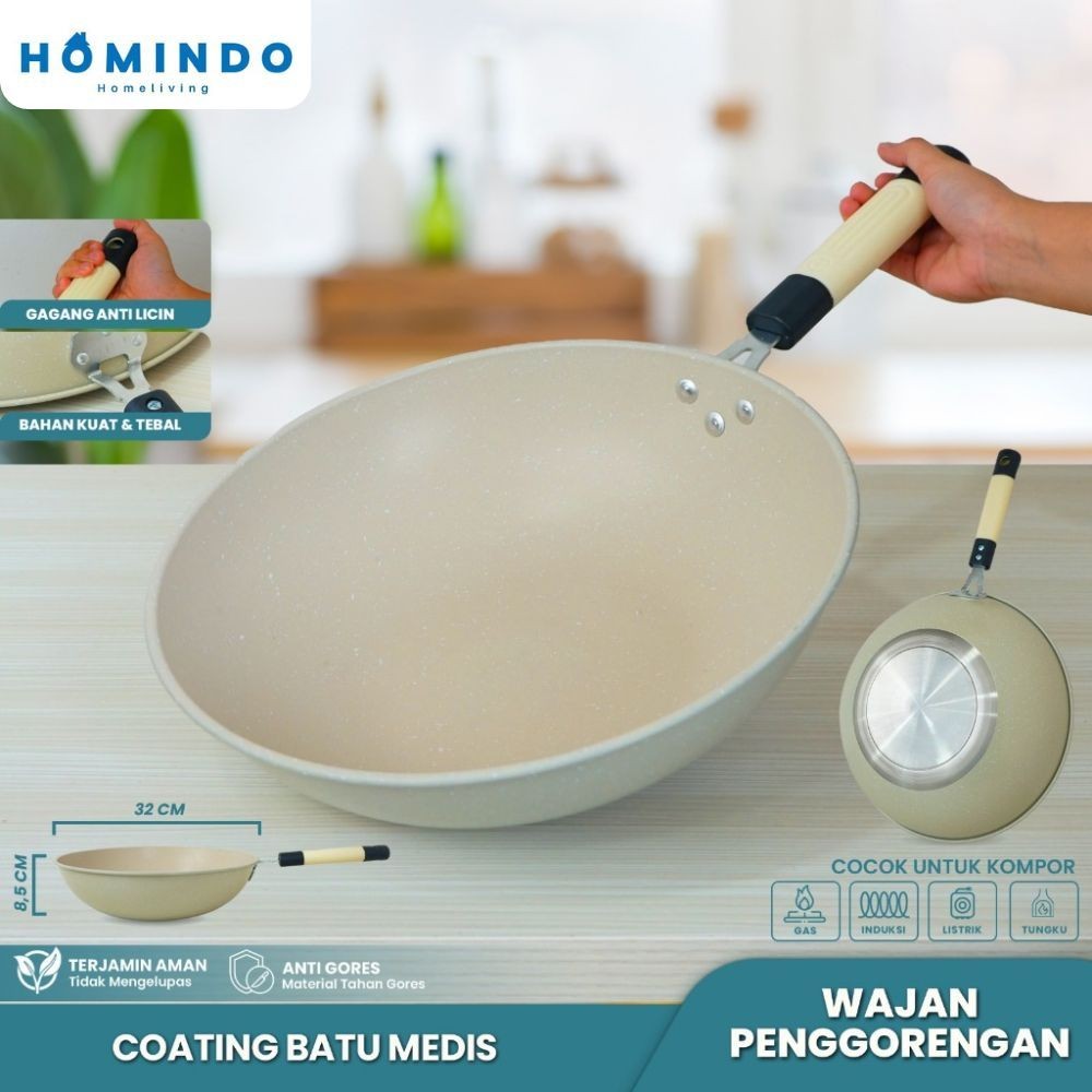 HOMINDO [] Wajan Penggorengan Anti Lengket 32cm Diamond Marble Coating Premium Tebal Tahan Lama