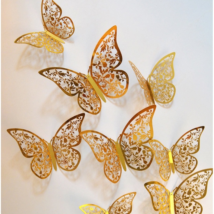 12pcs Stiker Dinding Desain Kupu-Kupu Hollow 3D Untuk Dekorasi Pesta Pernikahan Butterfly nyota