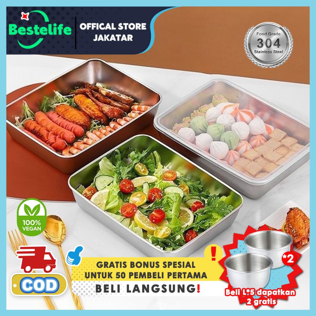 Food Container Stainless Wadah Stainless 304 Sayur Kotak Kontainer Makanan Kulkas Baki Stainless Steel Cocok Unt