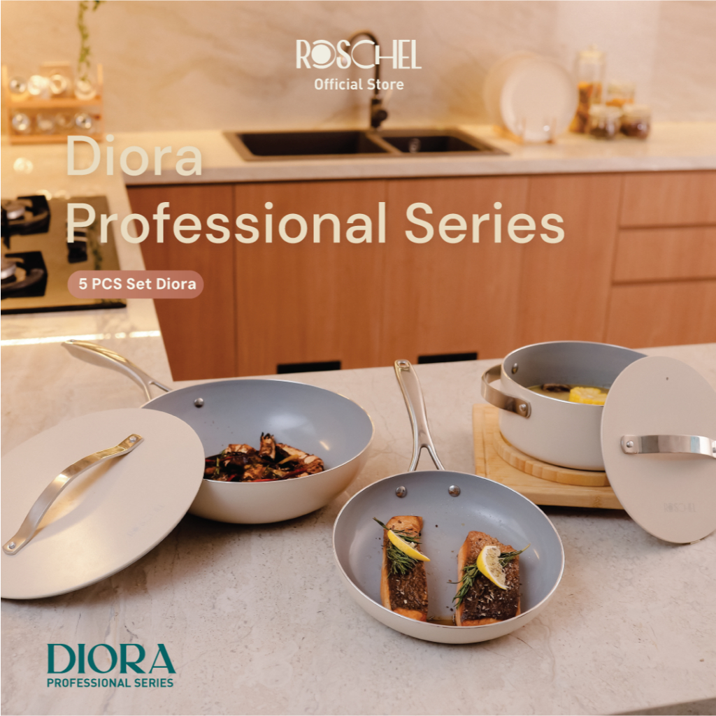Roschel Diora Professional Series Set (FP 22 cm + Wok Pan 28 cm + Dutch Oven 20 cm) Ceramic Non-Stick Greblon CK2 G