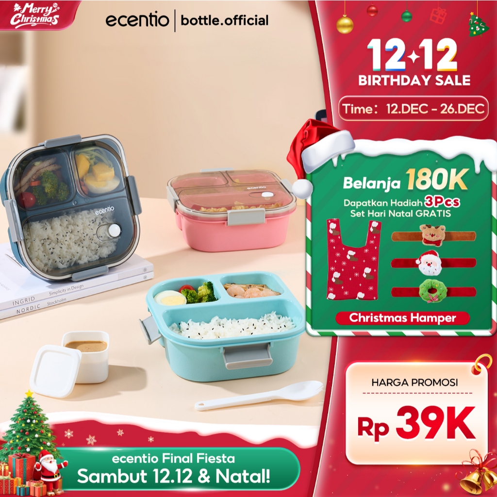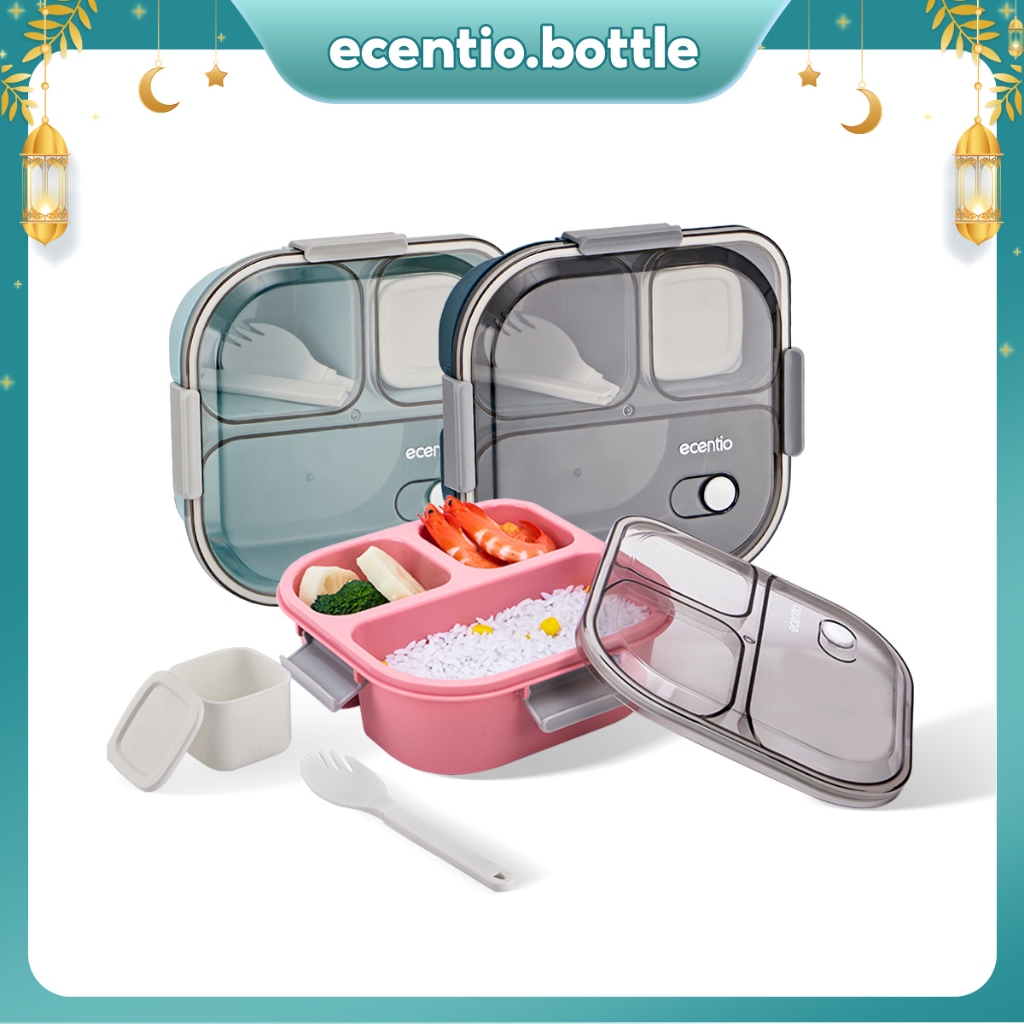 ecentio Kotak Makan 3 Grid lunch box/disegel Kotak/Anti bocor 1100ml+100ml/wadah individu/tempat makan dan sendok/ Free
