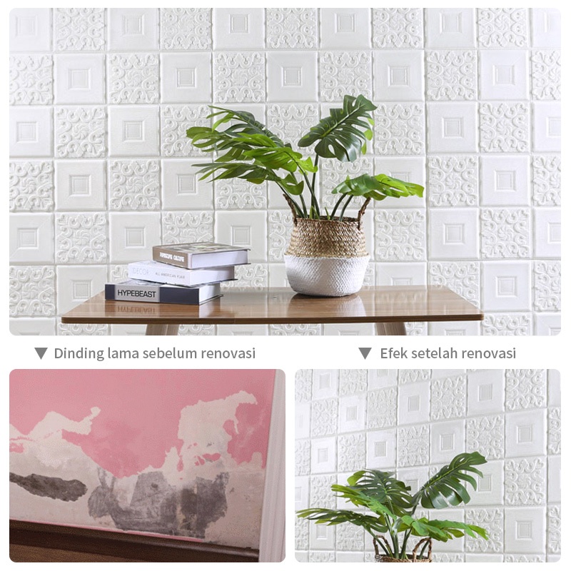 Wallpaper Foam Kotak Putih untuk Dinding atau Plafon Wallpaper 3D FOAM 70x70cm