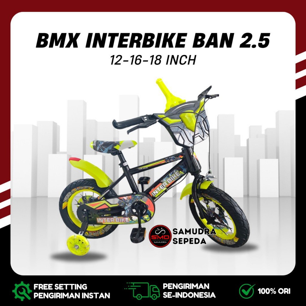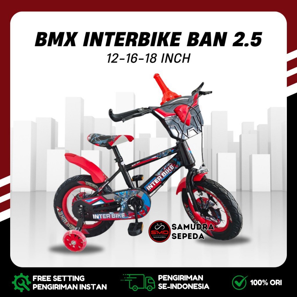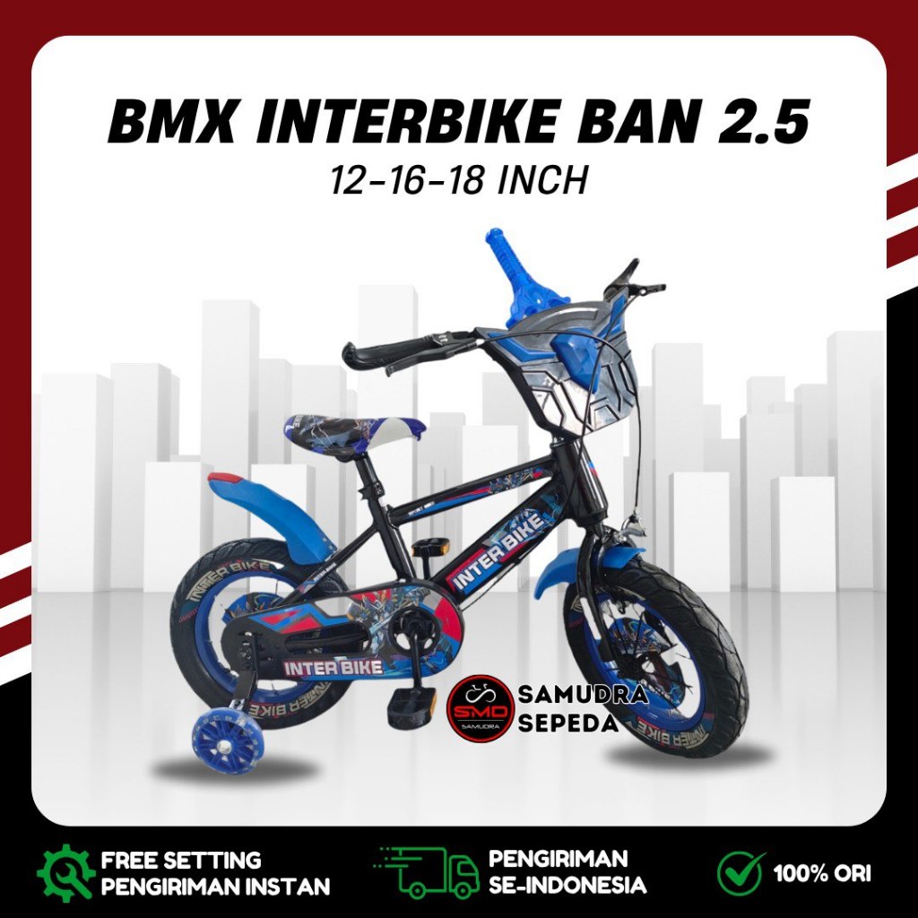 Sepeda Anak BMX 12 16 18 Inch InterBike // Centrum 322-3 Ban 2.5 / 3.0 Besar Lampu Klakson Murah BDG
