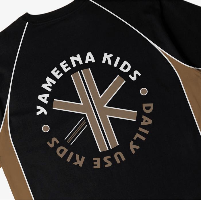 YAMEENA.KIDS KAOS ANAK RAGLAN LIST SIXLINE ATASAN ANAK UNISEX - TOFFEE, S
