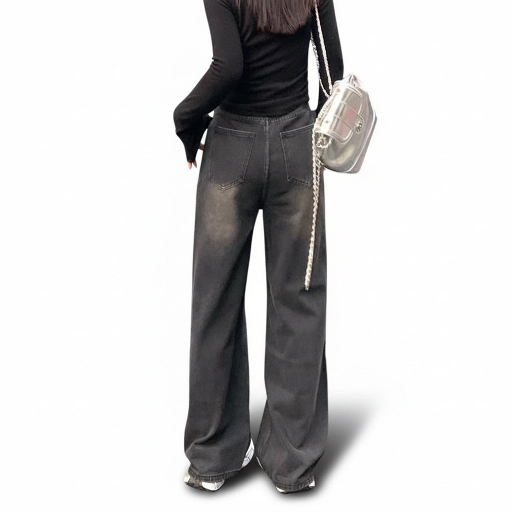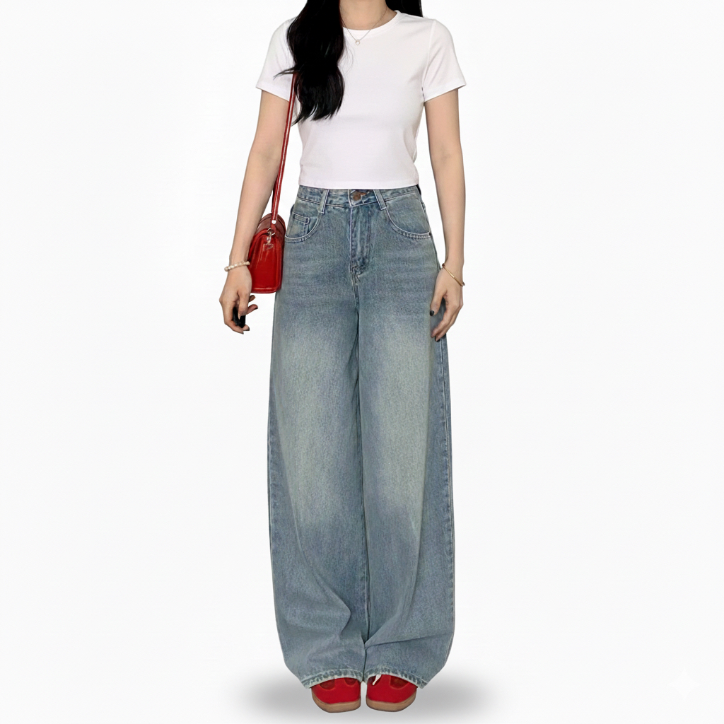 Ethena Women Biru retro Highwaist Celana Jeans Baggy Loose Jeans Wanita Gombrang Skena Jeans Unisex