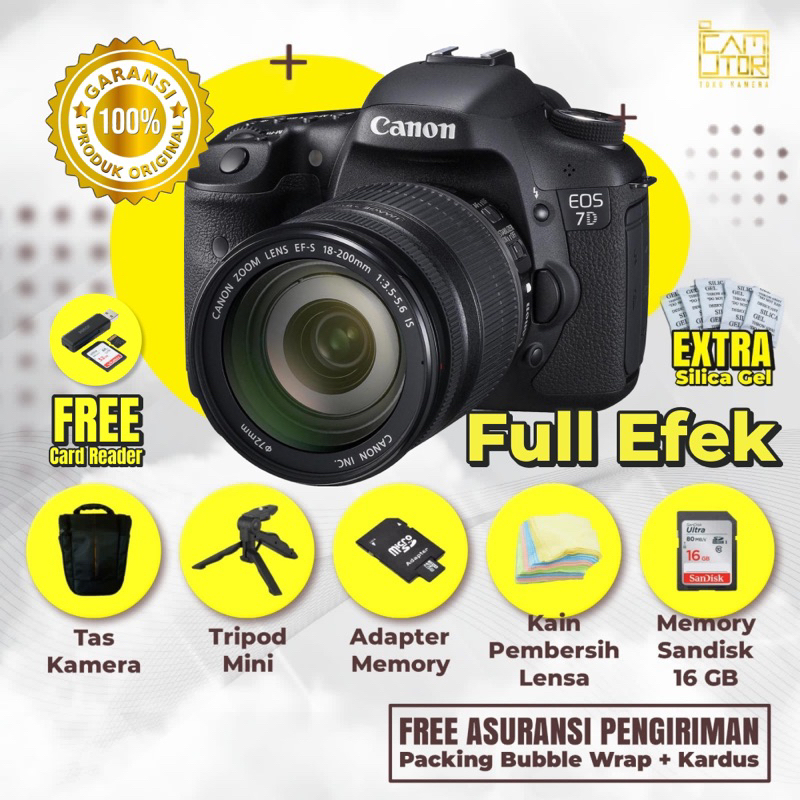 Kamera Canon Eos 7D Lensa Kit Mulus + Memory + Tripod + Tas + Garansi Toko Bukan 60D 600D