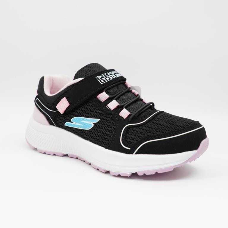 Sepatu Anak Perempuan Sekolah Skechers Hitam Pink Model Perekat Black Pink