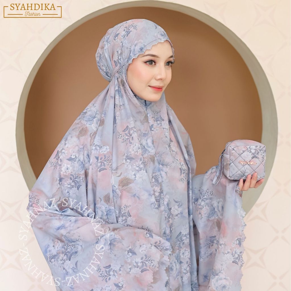 Mukena Travel Mini Parasut Premium Korea 2in1 Motif Rose Laser Cut Free Sejadah