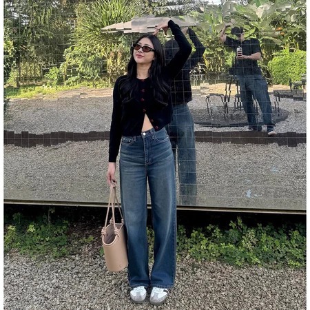 Highwaist Loose Adjustable Baggy Under Age voll 2 Celana Jeans Wanita kekinian