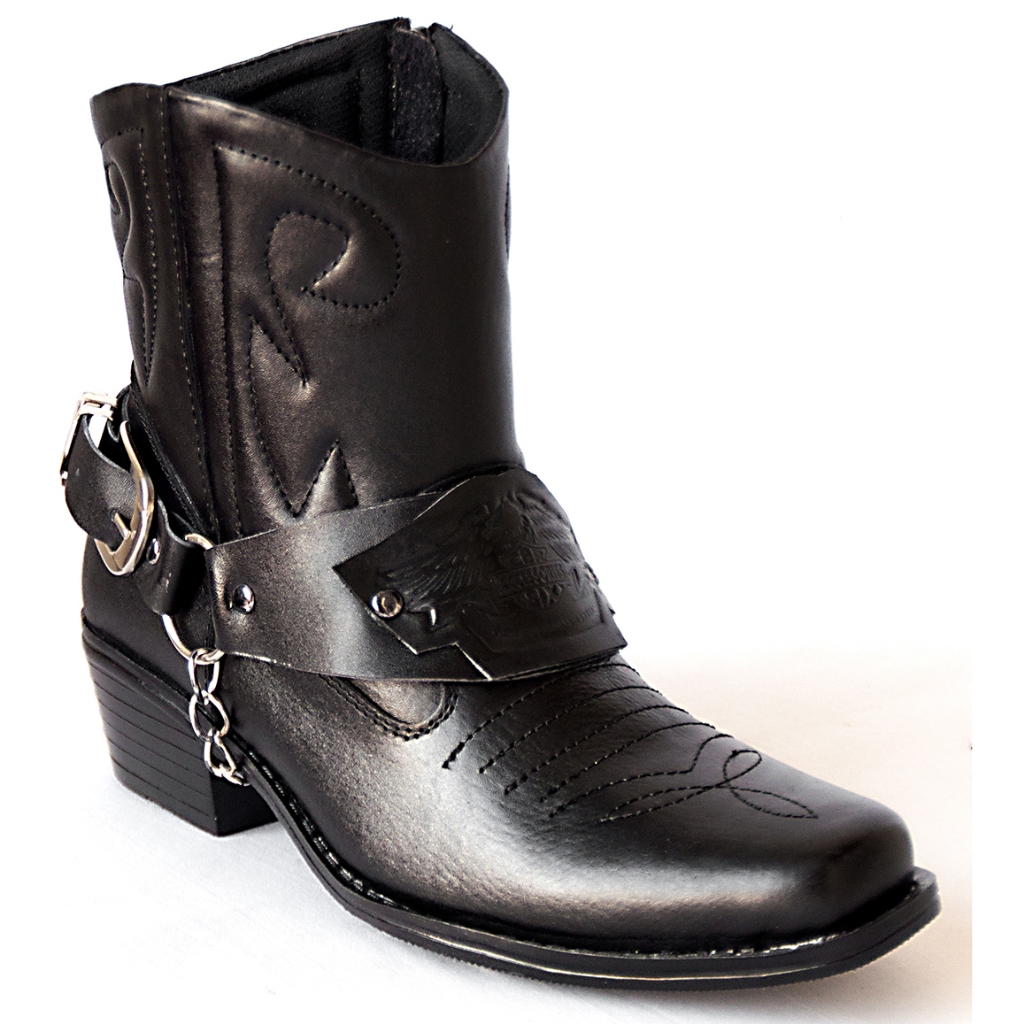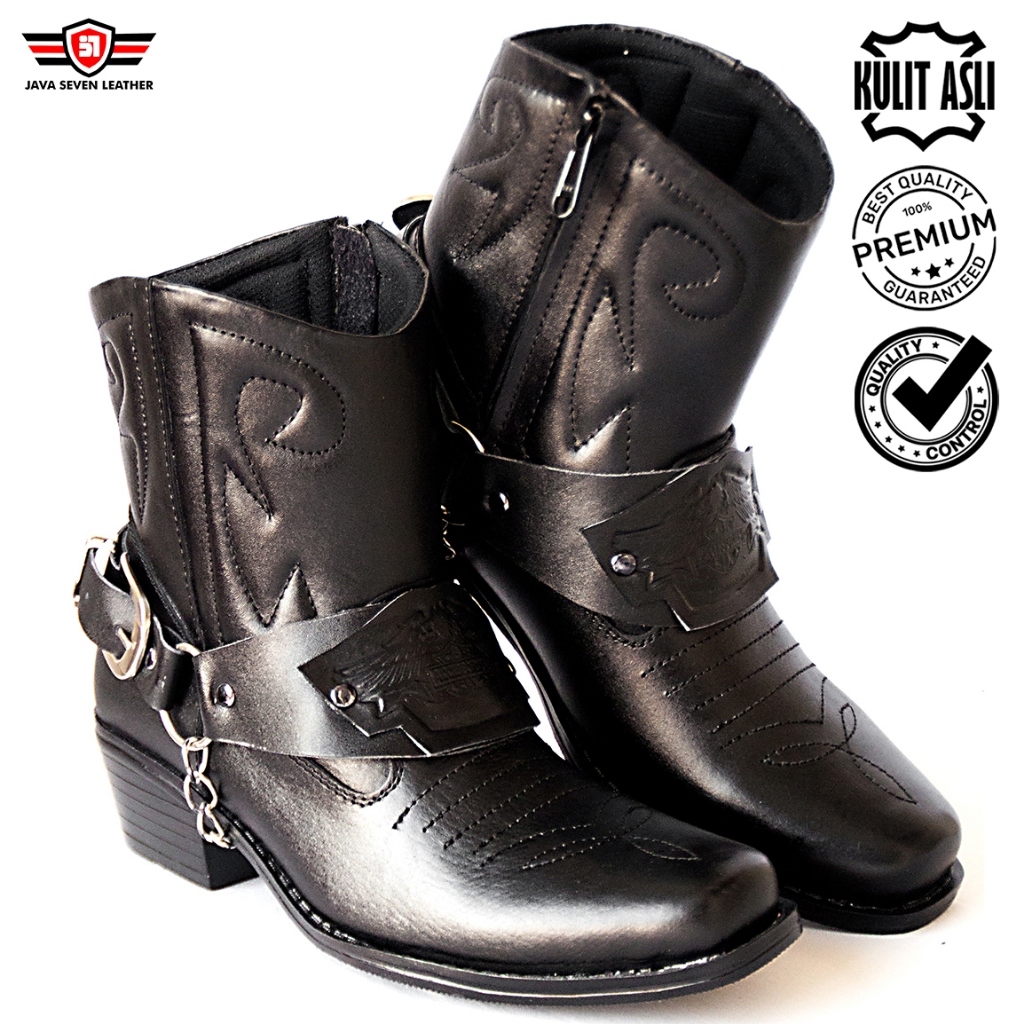 CBR SIX Sepatu boot cowboy / Kulit sapi premium / Touring motoris / Hitam BSC 218