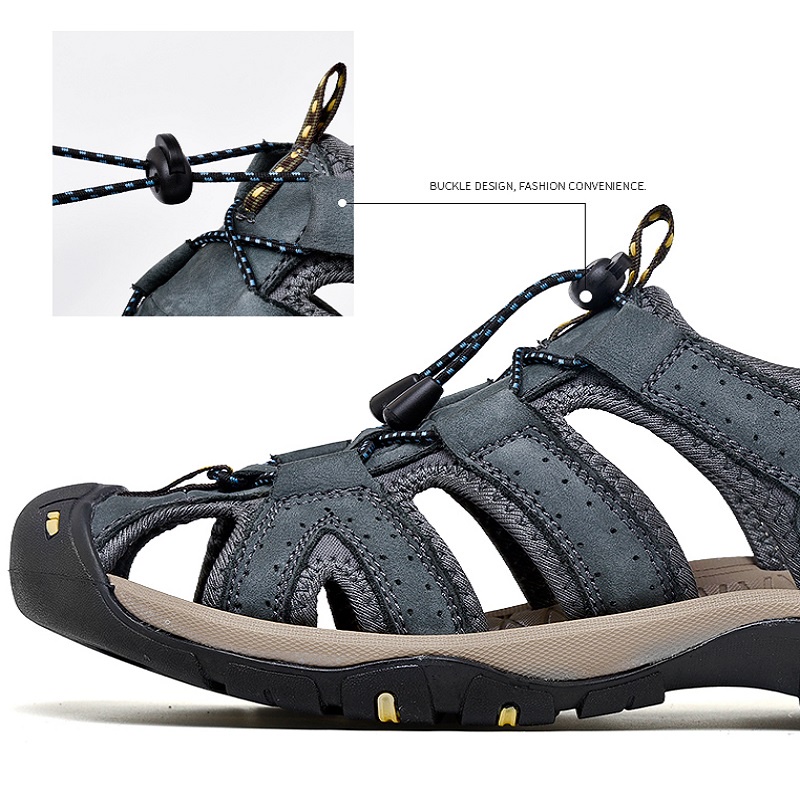 Import Sandal Traveling Gunung Sendal Pria Hiking Mendaki Kulit Asli Non Slip Cowok Dewasa MTB Waterproof Outdoor Santai