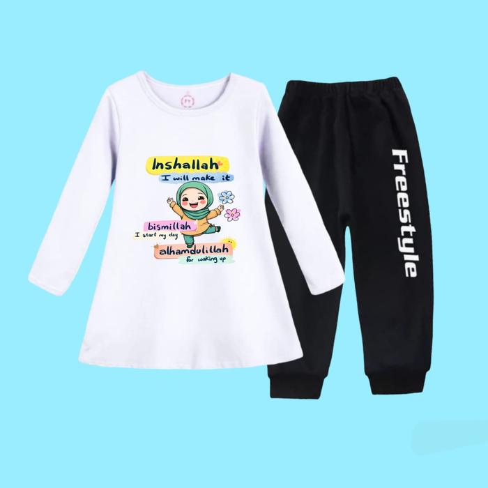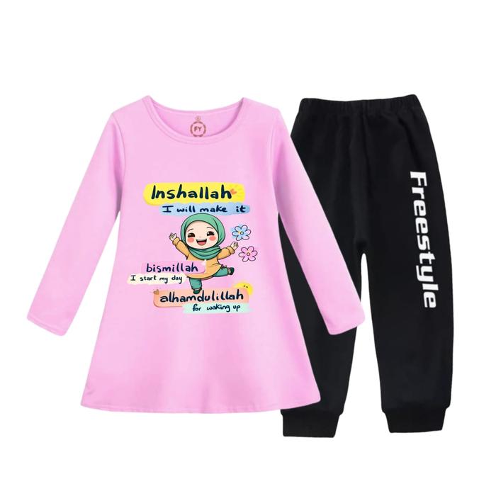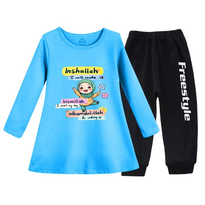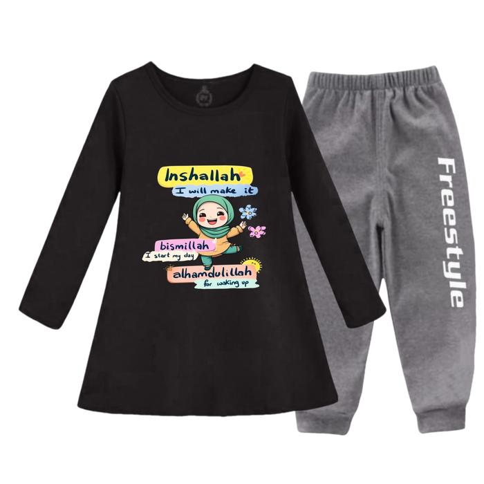 TUNIK MUSLIM ANAK SET TUNIK ANAK PEREMPUAN DRESS LENGAN PANJANG MOTIF HIJAB ANAK ALHAMDULILLAH - MAROON, 2