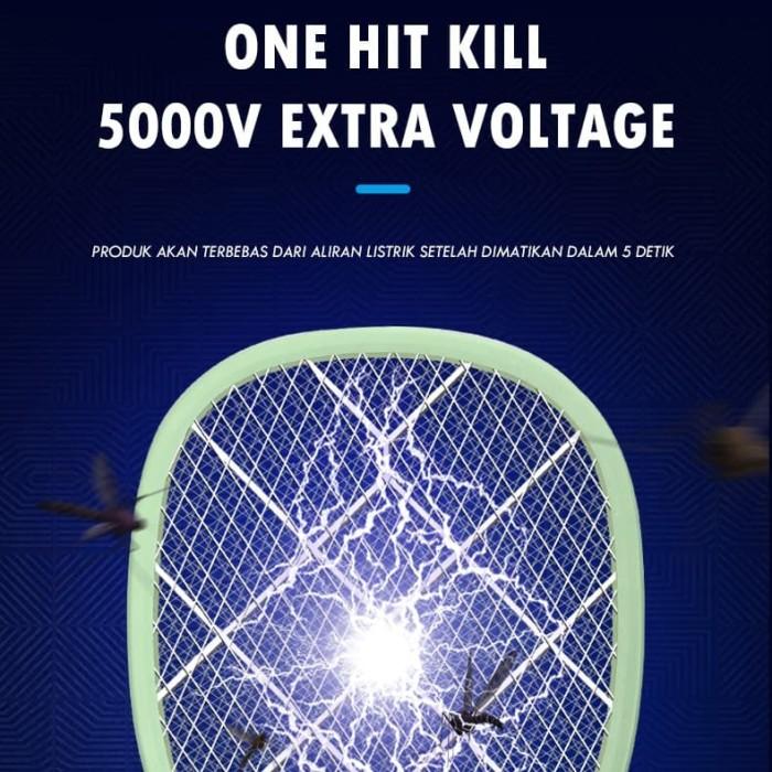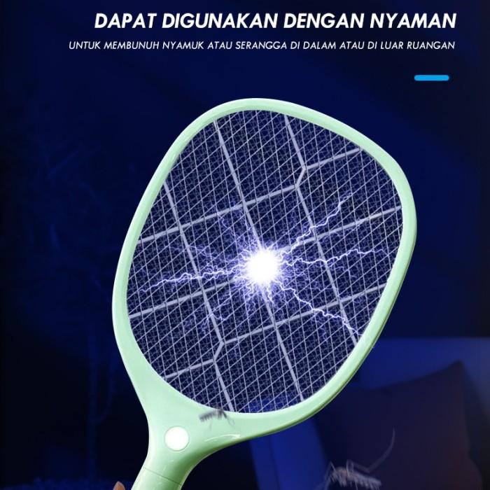 AOKI RAKET NYAMUK BATERAI LHITIUM KABEL CHARGER WARNA MACARON - BIRU