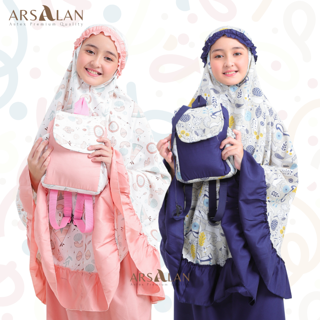 Mukena Anak Tas Ransel Rayon kombinasi Katun Mikro Zoo Series usia 2 - 12 Tahun