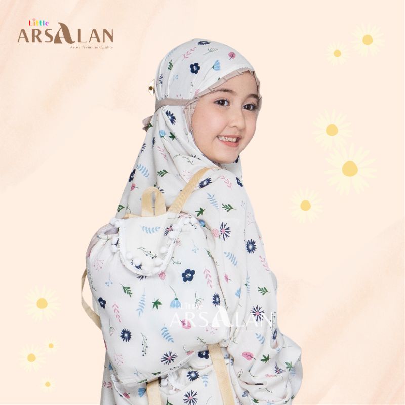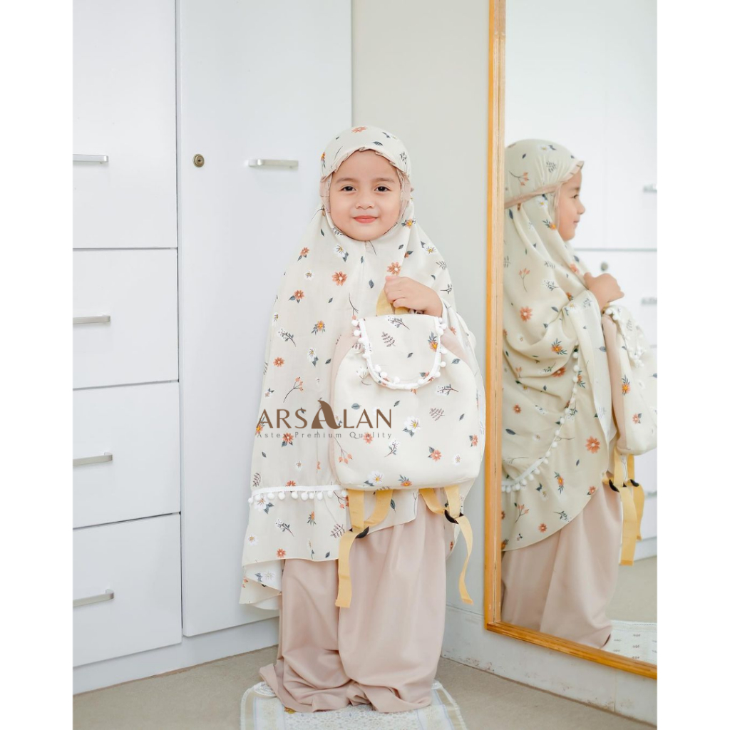 Mukena Anak Pompom Tas Ransel | Mukena Rayon kombinasi Mikro Anak SD Tanggung | Mukena Arsalan