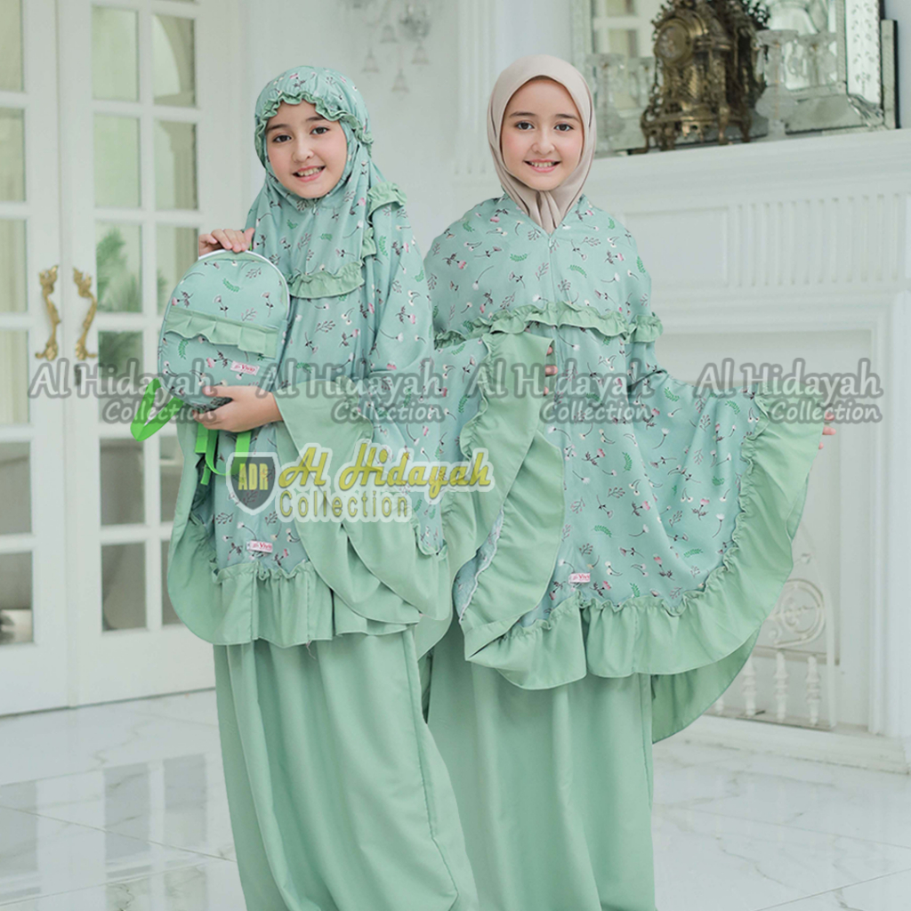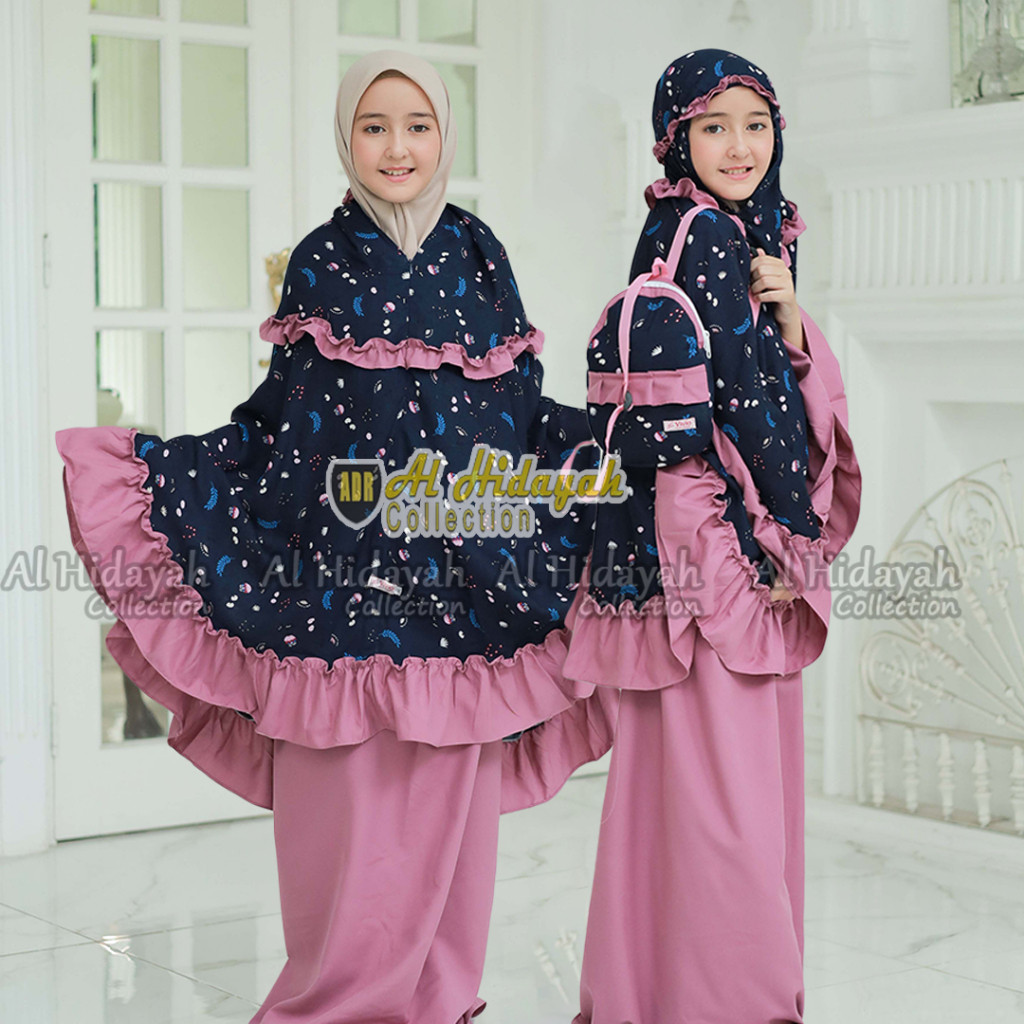 Mukena Anak Tas Ransel Resleting Dagu Rayon Premium Motif Mukenah 2 in 1 TK SD Tanggung 3 4 5 6 7 8 9 10 11 12 13 14 15 Tahun