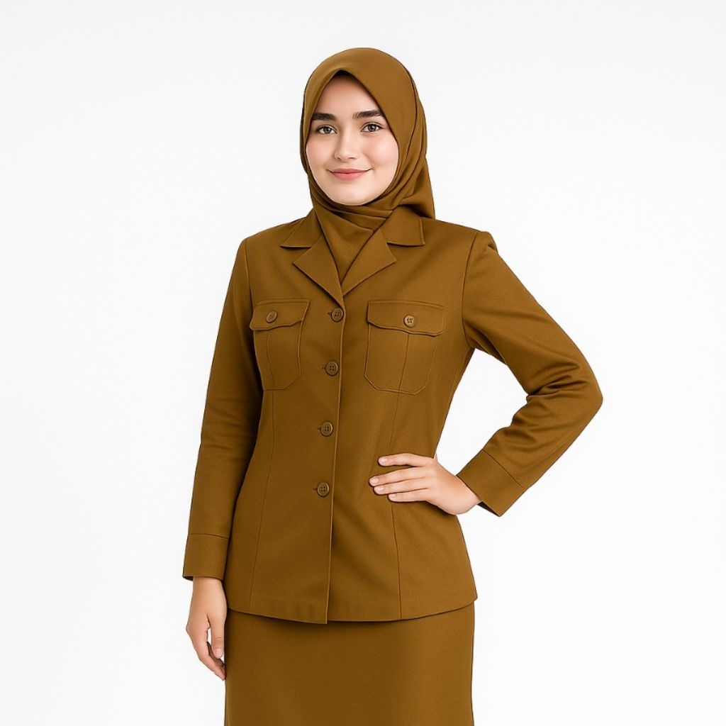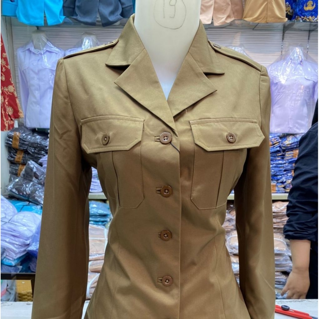 Stelan Seragam PNS Wanita Kantong Dada Kerah Jas Warna Coklat Pemda Ukuran SS 6L Seragam ASN Formal Murah Gratis Ongkir