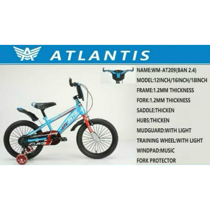 sepeda anak bmx Atlantis 12,16 & 18 inc music lampu