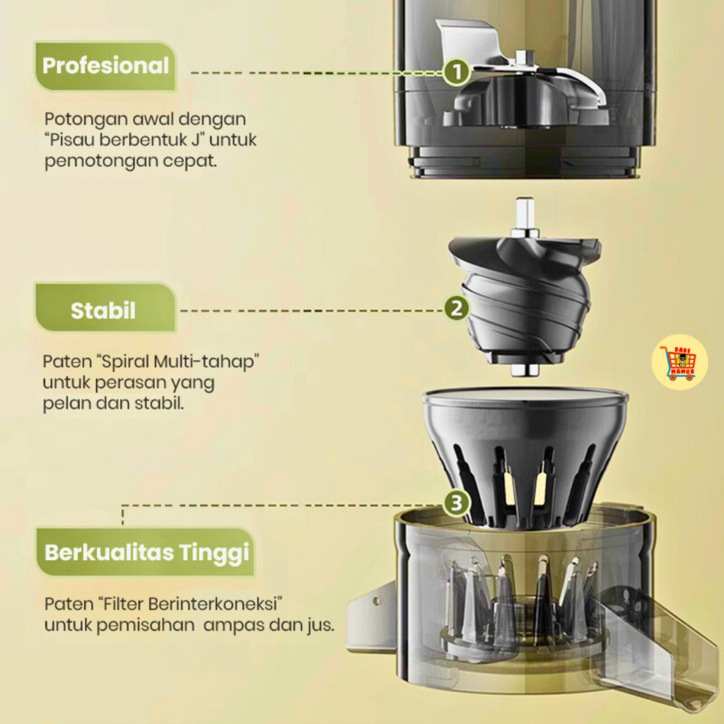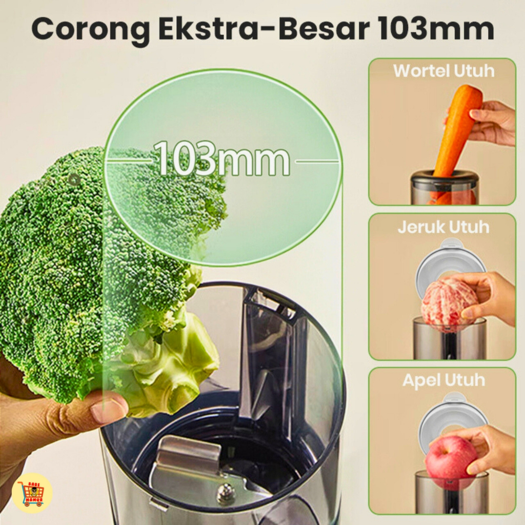 Mecoo Slow Juicer Aesthetic – Big Mouth 103mm, BPA Free, 100W Low Watt, Jus 98% Murni