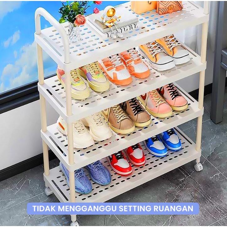 Rak Sepatu Multifungsi Rak Dorong - Rak Penyimpanan Stylish Plastic Kokoh Premium - FR-004-W