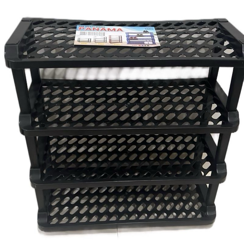 Rak Sepatu 4 Susun Plastik Tempat Penyimpanan Sandal Awet Hitam