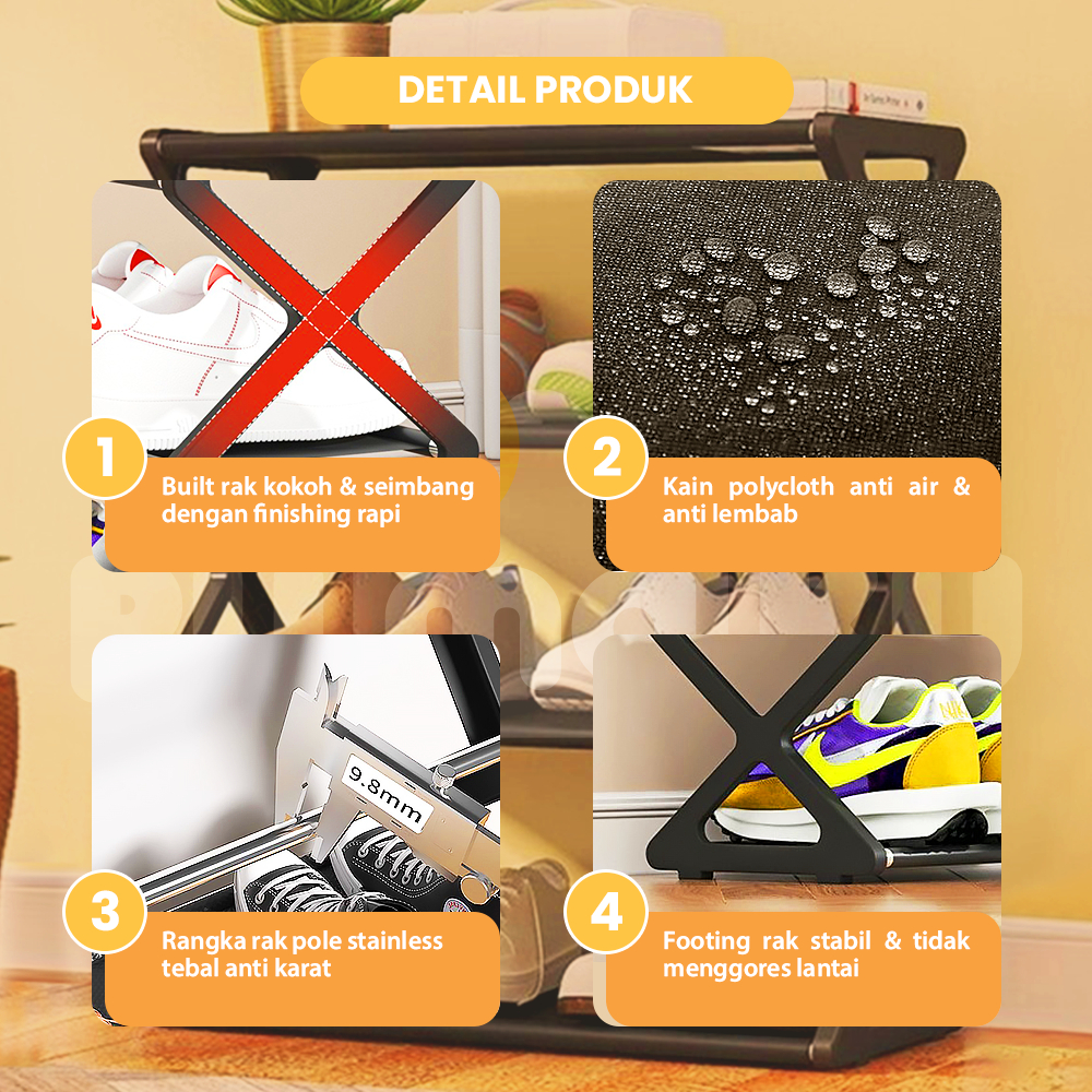 Rumaku Rak Sepatu Susun Portable 4/5 Tingkat Minimalis Stainless Steel Tempat Penyimpanan Sepatu dan Sandal Serbaguna