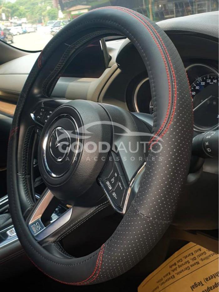 SARUNG STIR MOBIL UNIVERSAL – HITAM JAHITAN MERAH – GOOD AUTO