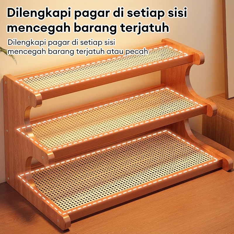 Kosistar Rak Kayu Aesthetic Rak Susun Minimalis Rak Bumbu Dapur Rak Serbaguna Rak Meja Kecil Multifungsi