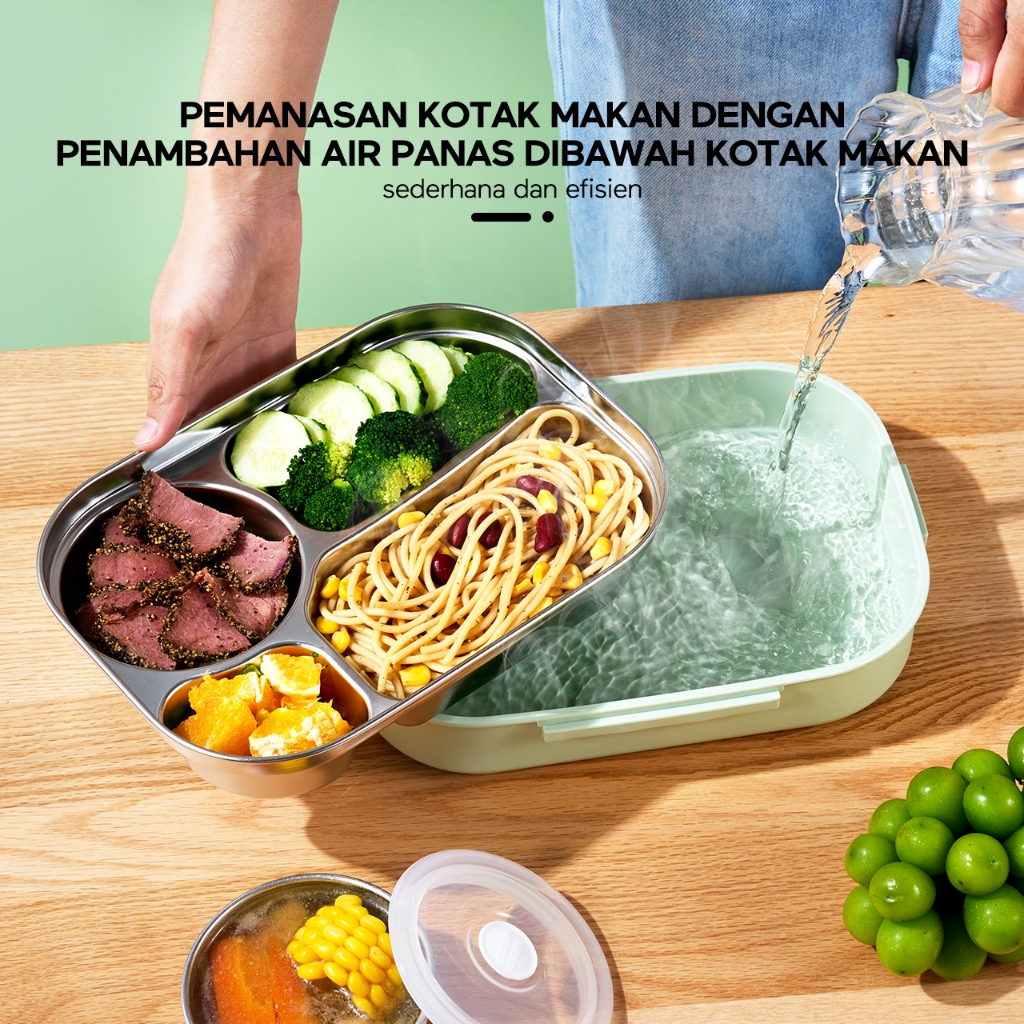ecentio lunch box stainless 4 Grid besar Portabel kotak bekal anti tumpah Tahan Panas Kotak Makan Berisi mangkuk sup den