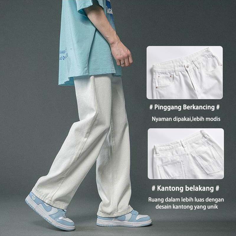 SUYX Celana Jeans Pria Baggy Celana Panjang Putih Oversize Celana Gombrong Pria Korean Style pants